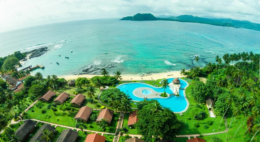 Infrastructures - Ce complexe hôtelier est le seul existant sur ce petit îlot. Il est composé de 45 bungalows qui sont divisés entre standards, supérieurs et suites. L’hôtel possède également 2 bars, l’un inséré dans la piscine pour savourer une boisson fraîche tout en ayant les pieds dans l’eau, 1 snack-bar, le Tortuga, où il est possible de déguster salades, pizzas, hamburgers, sandwichs ainsi que de voir un showcooking, un restaurant avec des buffets thématiques et vue magnifique sur l’île de Sao Tomé, une immense piscine d’eau salée pour adultes où des cours d'aquagym sont donnés tous les jours, 1 piscine pour enfants, salles de réunions, salle de jeux avec table de ping-pong et table de billard, dîners romantiques au Mirador de l’Amour avec vue panoramique sur l’océan, Spa Ossobô et sa salle de massages ouverte pour des traitements relaxants et revitalisants, centre de plongée PADI avec tout le matériel nécessaire tant pour les débutants que pour les professionnels, centre d’activités nautiques avec kayak, jet-ski, bateaux et possibilité de pêche sportive ou pêche Big Game. L’hôtel dispose également d’une petite chapelle où il est possible d’organiser des mariages. Le Wi-Fi est disponible dans l’ensemble de l’établissement.