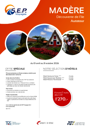 SEP Voyages vous invite à découvrir Madère, la perle de l’Atlantique, dans l’un des hôtels... Lire la suite