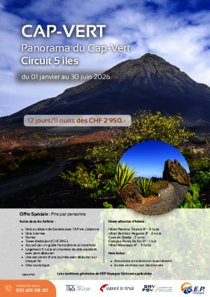 Partez à la découverte des 5 îles du Cap-Vert lors d’un circuit inoubliable alliant plages de sable doré, montagnes verdoyantes et traditions créoles. Vivez un panorama complet de l’archipel grâce à un itinéraire soigneusement conçu, incluant vols, transferts, excursions et une sélection d’hôtels confortables. Entre randonnées à Santo Antão, villes portuaires animées et moments de détente, ce voyage vous promet un dépaysement total au cœur de l’Atlantique.