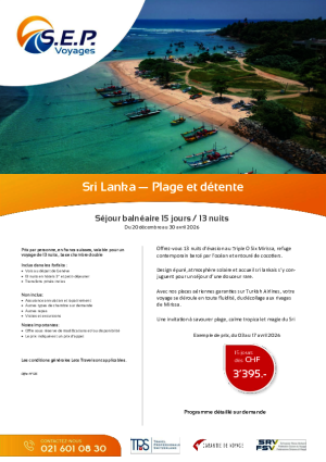 Prix par personne, en francs suisses, valable pour un voyage de 13 nuits , base chambre double